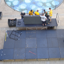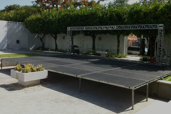 The AS2100 Staging System features two standard deck sizes (4’ x 4’ and 4’ x 8’), 45° corners, and rounded corner decks that can be used with either fixed or telescoping legs. They’re tough and versatile enough for use indoors or out.